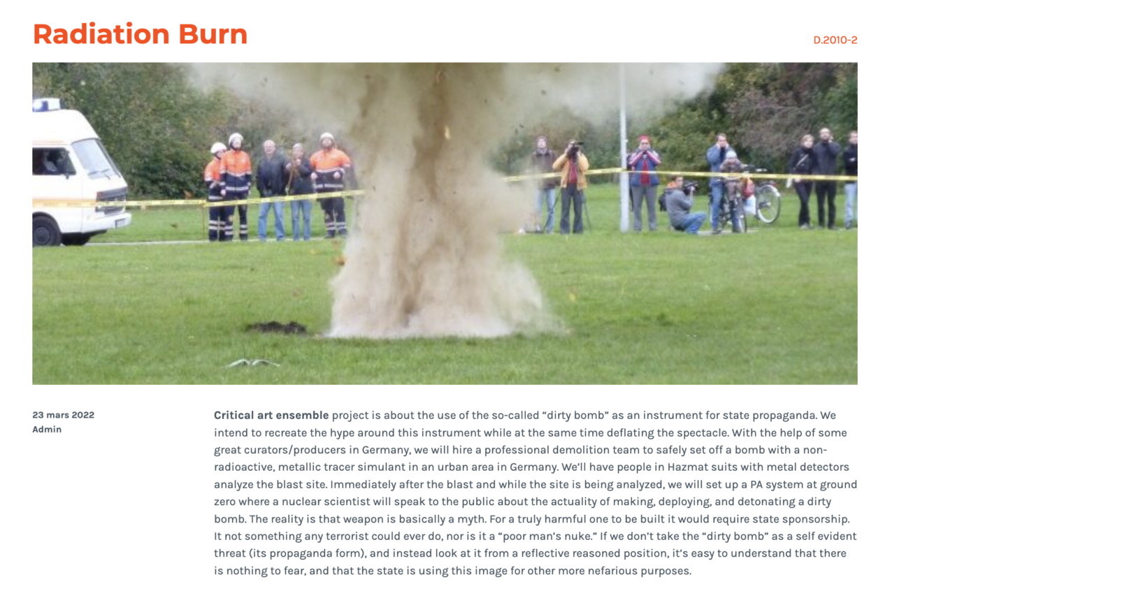 Le site interent des Archives Gamma se donnent pour fin de documenter l’histoire et les métamorphoses de la matière radioactive – et à travers elles l’homme nucléaire. Ces archives compilent des recherches scientifiques et artistiques, des projets aboutis ou avortés, des fantasmes ou des réalités, des histoires réelles et des fictions, des catastrophes et des accomplissements, ses usages et ses détournements.