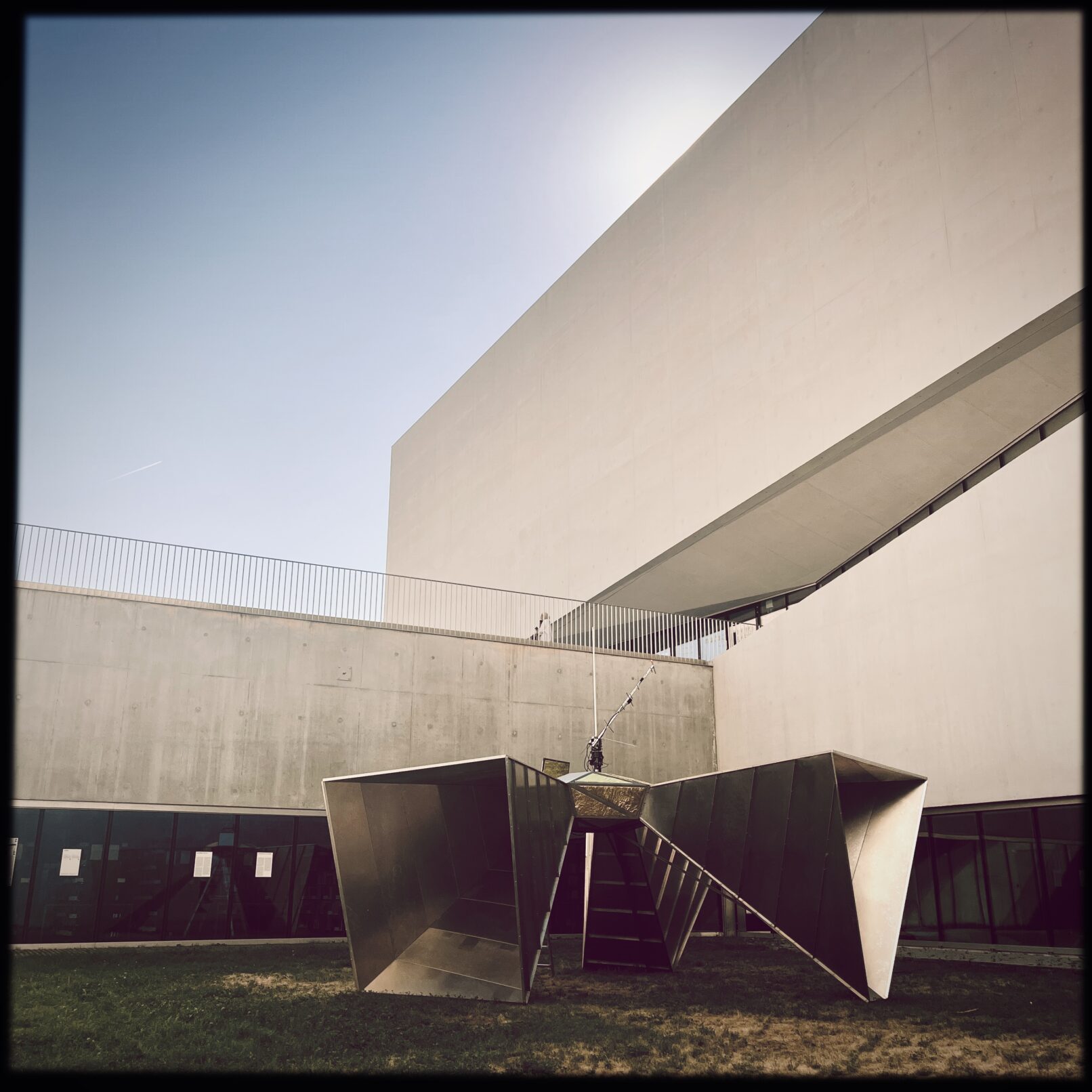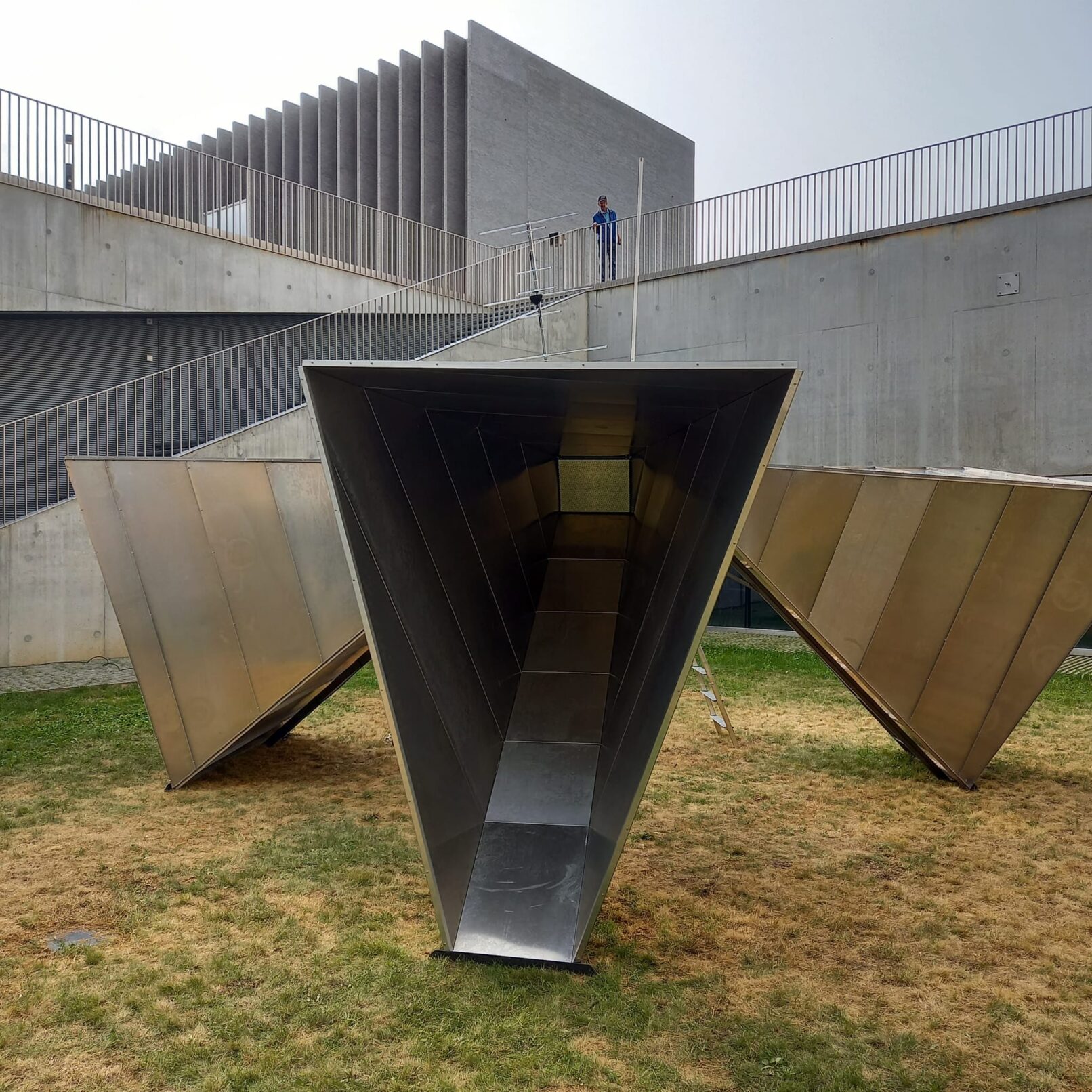 Nous voilà en face d’une étrange machine à côtoyer l’espace-temps. Elle se nomme Hystérésia : « Hystérésis » vient du grec « hystéros » (« plus tard, placé après ») et désigne, en physique, la persistance d’un phénomène quand cesse la cause qui l’a produit. Cette installation est une station d’écoute d’ondes sonores, un observatoire auditif de fréquences spatiales lointaines et fantomatiques.