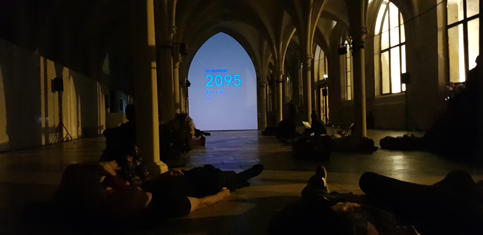 La forêt est une symphonie de sons qui depuis plus d’un siècle est en pleine mutation. Comme pour mieux réver ou envisager ce phéno- mène, Sylvia, nous plonge dans le futur lointain d’une foret, à travers une installation sonore et visuelle. Ce paysage en devenir est matéria- lisé par la projection d’une horloge qui défile sous nos yeux.